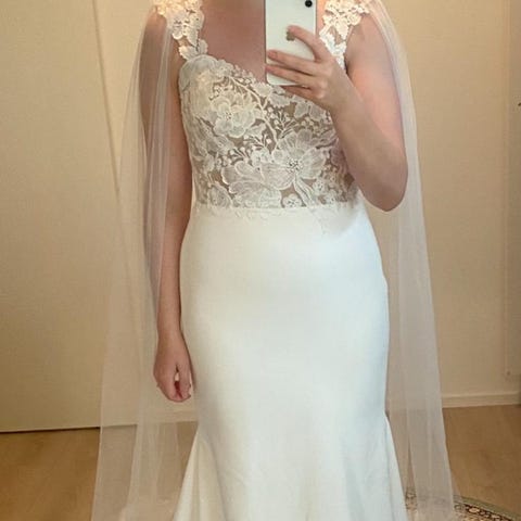 Myydään aivan ihana, käyttämätön Michael Kors Bridal -merkkinen häämekko. Mekko on pliseerattu, laadukas, laskeutuva 'crochet' pitsimekko. Helma on runsas ja kauniisti laskeutuva.