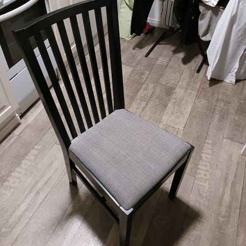 Muuton tieltä pois 2 kpl jämäkkää valkoista tuolia. Istuinosa harmaata kangasta.yht.12 e. Nouto.