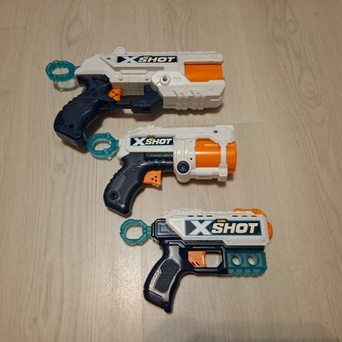 Myydään X-Shot dino attack pehmopanosaseet settinä. Ehjät, ei käytönjälkiä.