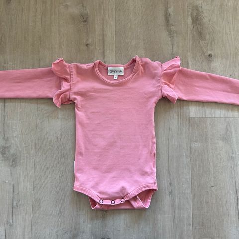 Gugguu vaaleanpunainen body, koko 86, unisex. Valmistettu 93 % puuvillasta ja 7 % elastaanista. Soveltuu lapsille. Valmistettu Virossa, suunniteltu Suomessa.