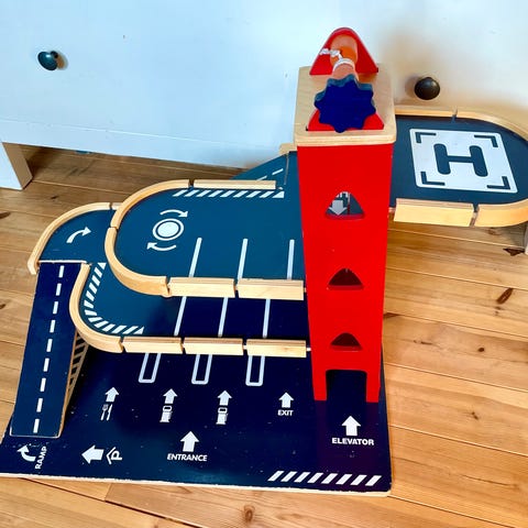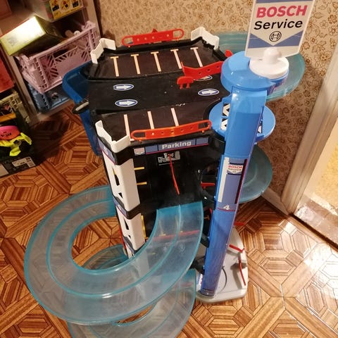 Myydään parkkitalo ja 7 pientä ajoneuvoa. Osista koottava ja parkkitalon pystyy rakentamaan myös toisen malliseksi. Varsin heppoinen rakenteeltaan. Hyvin vähän leikitty eli ehjä ja siisti. Pienet osat irroitettavia eli ei ehkä ihan pienelle sopiva parkkitalo.