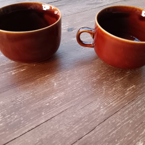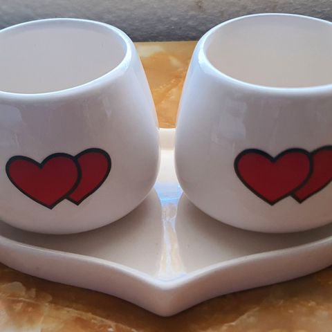 Upea punainen retro kahvikuppi lautasella. Postitus onnistuu.