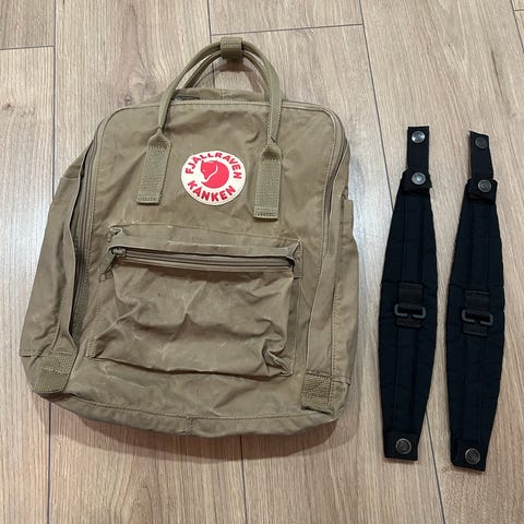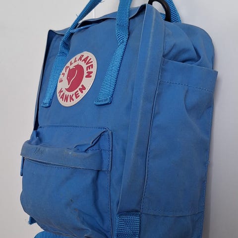 Kulunut Kånken, pesty juuri, mutta likaa ja pesussa vaaleaksi muuttunutta aluetta on reunoissa ja etutaskussa. Vetskari on ehjä ja istuinalusta mukana. En ole silittänyt. Luulen että sateenpitoainetta pitää ruiskuttaa uudelleen pintaan, jos haluaa kosteudenpito-ominaisuuden takaisin. Vain nouto Helsingin Oulunkylästä. Meillä on savuton ja eläimetön koti. Ostettu aikoinaan Partioaitasta.