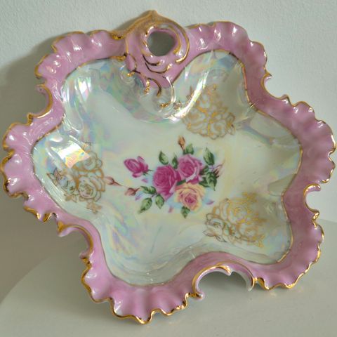 Koristeellinen, kaunis posliinitarjoilulautanen erillisillä lautasilla, jossa rei'itetty reunus. Lautasissa on erilaiset hedelmäkuviot: kirsikka, viinirypäle ja luumu. Valmistettu posliinista, väri valkoinen. Lautaset soveltuvat hyvin myös koristekäyttöön. Tuntemattomalta valmistajalta oleva setti on kaunis lisä esim. Juhlallisempiin tilaisuuksiin tai vaikkapa lahjaksi kauniita posliiniesineitä pitäville.