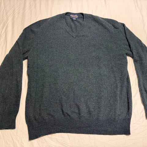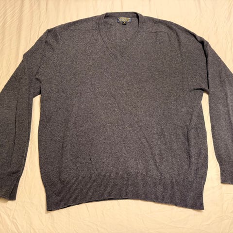 Myyntiin siistikuntoinen ja ehjä L.L. Bean -merkkinen neule klassisen tummanharmaassa värissä ja koossa XL. Kangas on paksua, pehmeää ja laadukasta 100 % kashmirvillaa.
