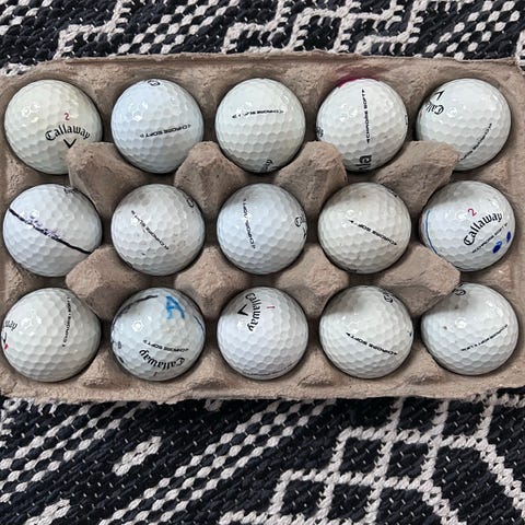 12 kpl Callawayn Supersoft käytettyjä palloja. 5 pinkkiä ja 7 Splatter palloa.