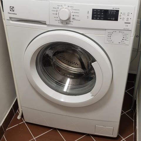 Kompakti vähällä käytöllä ollut kone. Syvyys vain 420mm, korkeus 845mm, leveys 595mm. Rummun tilavuus 5kg.