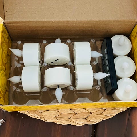 Yhdestä tuikusta puuttuu "liekkikupu", mutta valo palaa, voi käyttää siis vaikka vähän läpinäkymättömämpään tuikkukippoon. Muun seassa ei varmasti niin huomaa esim juhlakoristusten.