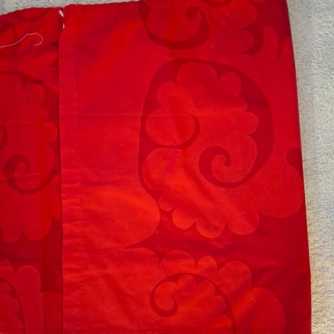 Kuvien mukainen kappaverho mitat pit. 176,5 x 54 cm. Siisti käytössä ollut verho. Ompelijan ompelema. Tankokuja. Pesty hajusteettomasti.
