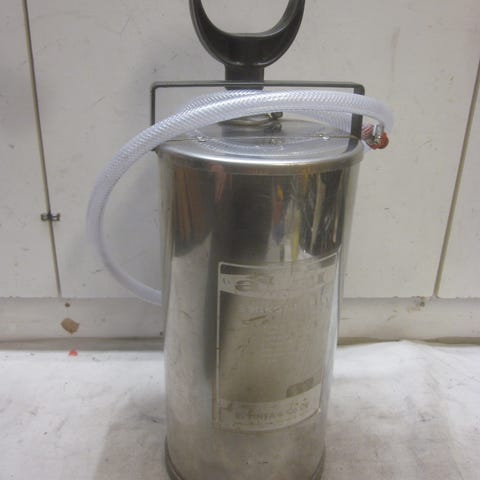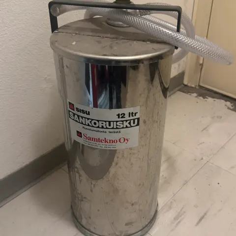 uusi käyttämätön paloruisku vanhaa varastoa. tehokas alkusammutusväline pihagrillikatokseen tms. luja messinki pumppu