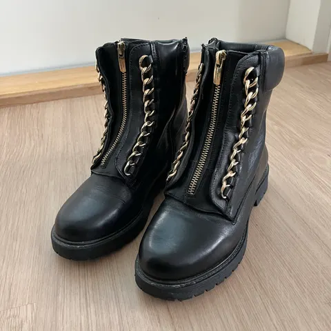 House Pitkävartiset naiharit koko 38, musta väri. Päällinen keinonahkaa ja vuori tekstiiliä. Mallissa on nyöritys ja vetoketju sivussa. Pohjan korkeus n. 6 cm ja varren pituus n. 36cm. Myös postitus onnistuu.