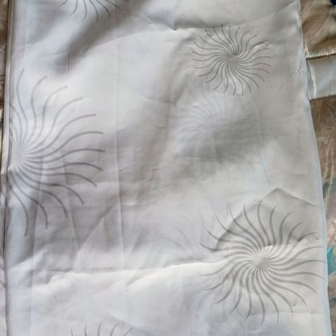 Valkoinen suihkuverho mustin kuvioin. Avaamaton pakkaus. Koko 180x200 cm. Pakkauksessa myös ripustuskoukut. Verhon kuvio näkyy pakkauksessa.