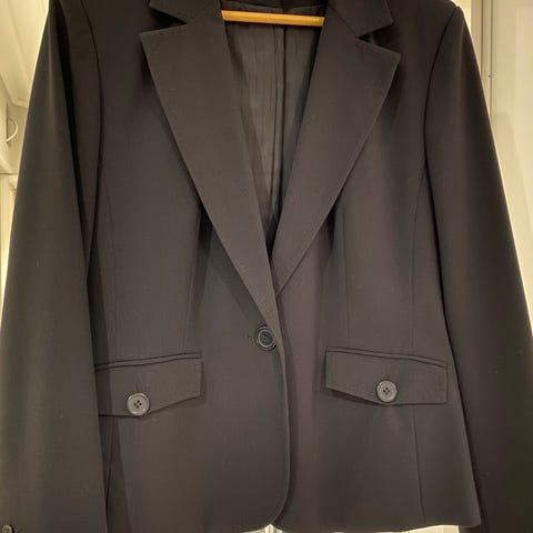 Musta blazeri koko 40, merkki Blue. Blazerin yläosassa on vuori. Muista ilmoituksistani löytää halutessaan tälle pariksi samanmerkkisen ja -kokoisen kotelomekon.