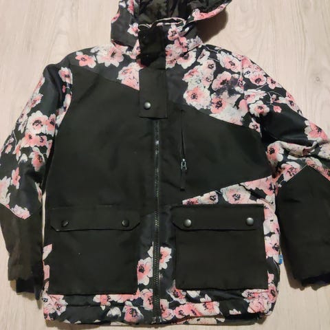 Kullanhohtoinen toppatakki. Ehjät kankaat, hieman kiilto kulunut paikoittain, huomaa kun lähemmin tarkastelee.