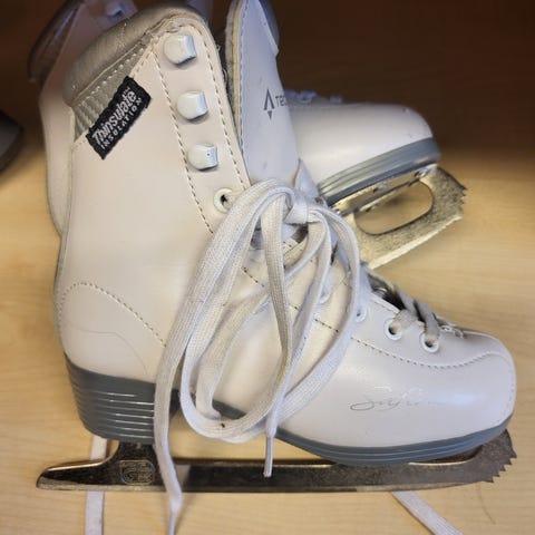 Angel luistimet koossa 31, pohjallisen pituus 21cm. Kunto ok ja hyvässä terässä, mutta oikean jalan luistimessa ulkopuolessa pinnassa painauma/ halkeama, joka ei toki sisältä oikein tunnu. Huomioitu kuitenkin hinnassa. Nouto etusijalla.