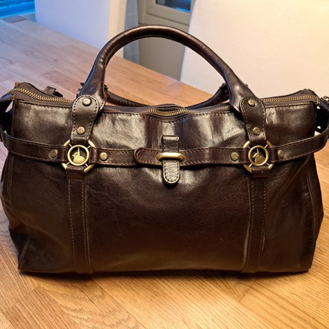 Ruskea nahkainen käsilaukku