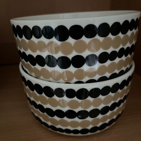 Marimekko Siirtolapuutarha Räsymatto tarjoilukulho, beige - musta.