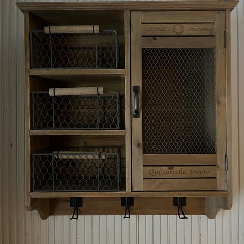 Uusi, käyttämätön seinälokerikko kolmella kangaspussukalla esim eteiseen, vaatehuoneeseen, mökille, varastoon.
