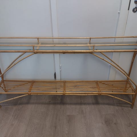Ajan myötä hieman ylätaso keskeltä taipunut, mutta silti jämäkkä. Toisesta päästä ylätasoa vähän tummentumaa.