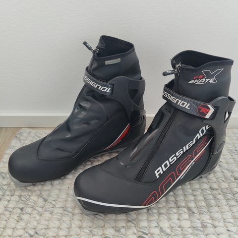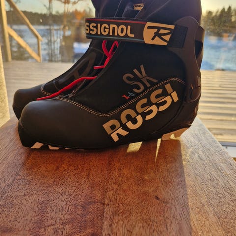 Rossignol maasto/tai luistelumonot mustassa ja punaisessa värissä. Kengissä on vetoketjullinen suojus ja tarrakiinnitys nilkan kohdalta. Pohjassa on nastat ja kenkä on valmistettu kestävistä materiaaleista. Sopii maastohiihtoon tai luisteluhiihtoon