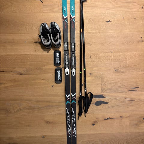 Sukset: 130cm, ei omaa pitoa. SNS siteet.