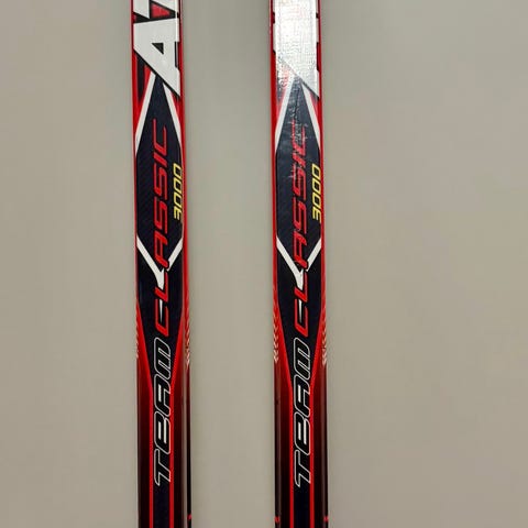 Myydään 140 cm Atomic Ski Tiger -sukset, joissa pitopohja, Atomic-siteet Profil SNS ja One Way -sauvat 110 cm.