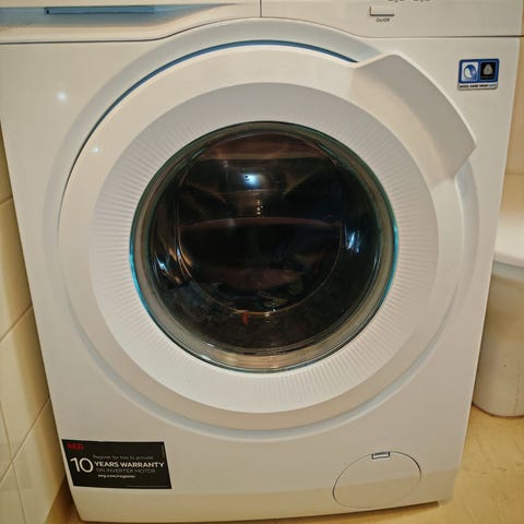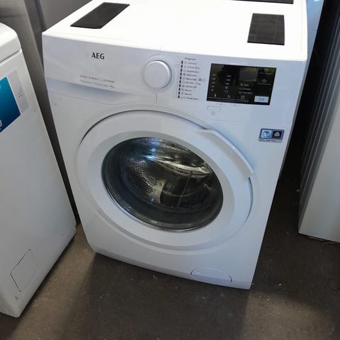 AEG Lavamat protex plus 7 kg, päältä täytettävä pesukone. Laitteen käyttöliittymässä on valintakytkin ja painikkeet eri pesuohjelmille. Väri on valkoinen. 16 eri pesuohjelmaa.