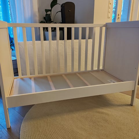 IKEA Sundvik pinnasänky. Kahdella lapsella käytetty, mutta verrattaen siistissä kunnossa. Paikoitellen pieniä kulumia. Mukaan ikean patja, jossa aina käytetty kosteussuojaa. Patjaa ja sänkyä säilytetty aina lämpimässä tilassa.