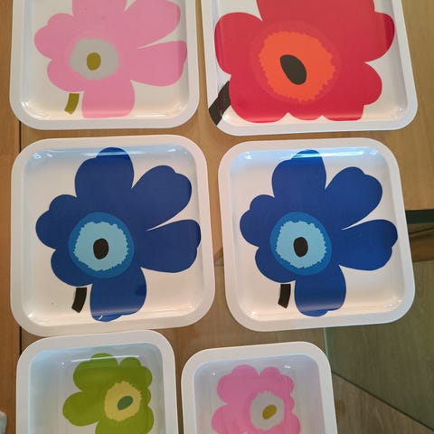 Myydään Marimekon juhlavuoden 60 tarjoilu astiat 2kpl. Käyttämättömät, alkuperäinen laatikko.