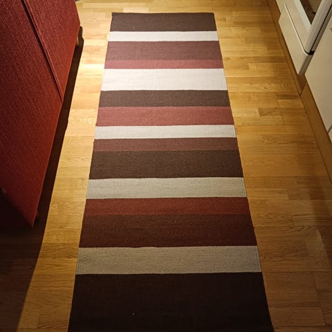 Pitkä matto. Toinen puoli eri kuvio.