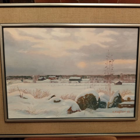 Hakusanat: talvimaisema, öljyväri, asetelma, taide, Paketoitava, taiteilija, öljyvärimaalaus, taulu, suomalainen taide, taulut, maisemamaalaus, kehys, 1999, raamit, kultakehykset, väri, r. kivijärvi, sisustus, maisema, vesiväri, akvarelli, teos, kehykset, raami