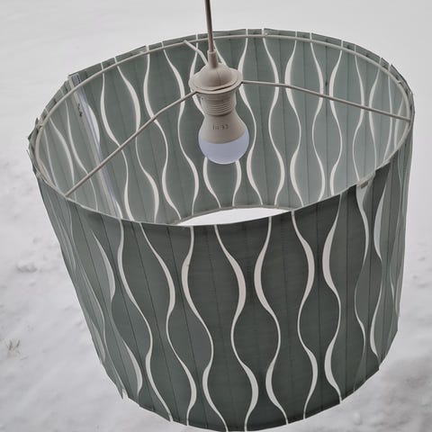Harmaa iso kattolampun varjostin. Korkeus 29cm ja leveys 34-43,5cm. Mukana ei tule ripustinsarjaa. Ostettu Ikeasta, joten tähän sopii ainakin Ikean ripustin ja pistoke.