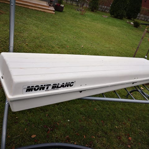 Vähän käytetty isohko suksiboksi. Väri mattaharmaa. Lukittava.