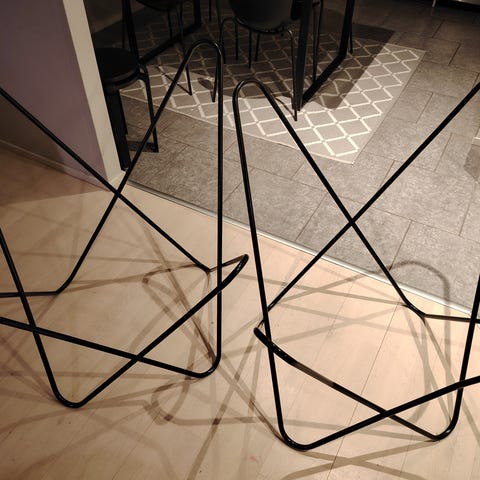 Muuton takia myynnissä kuvan lepakkotuoli. Alkuperäinen väri musta ja merkki Varax. Tuolin jaloissa muutamia naarmuja, mutta siistissä kunnossa. Kaupan päälle myös toinen mustaksi maalattu lepakkotuoli, alkuperäinen väri valkoinen. Rungoissa ei vääntymiä, tuoleissa mukava istua. Tuolien mukaan tulee Varaxin oranssi ja Marimekon mustavalkoinen Kivet sekä sininen Unikko istuinkankaat. Kivet-istuinkankaan kulmassa kulumaa, näkyy kuvassa. Tuolit purettu kasaan, mukaan ruuvit. Haku Kapernaumista.