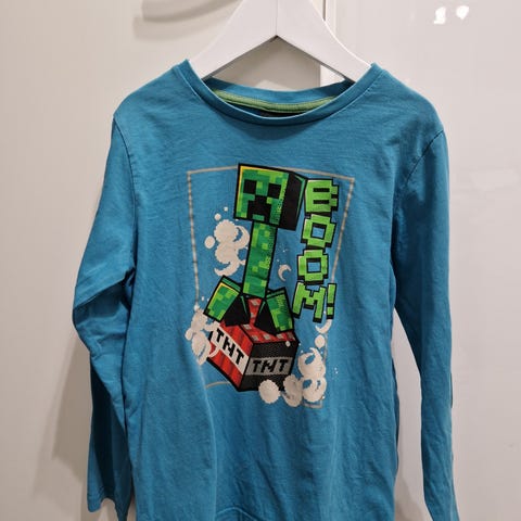 Kaksi Minecraft paitaa joista harmaa jo kuluneempi, mutta ehjä.