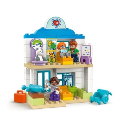 LEGO® DUPLO® Pelastustehtävät: Lääkärissä (10968) setin hauskat leikit ja ystävälliset hahmot hurmaavat pienet lääkärin‑ ja sairaanhoitajanalut takuuvarmasti. Tämä monipuolinen leikkisetti on loistava tapa lieventää 2-vuotta täyttäneiden lasten lääkärissä käyntiin liittyvää jännitystä.