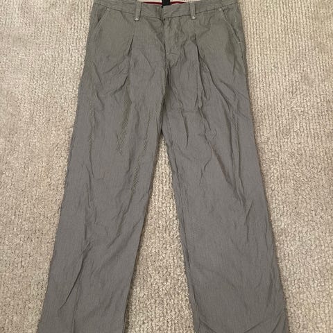 Käyttämättä jääneet vakosamettihousut 100% puuvillaa. Kerran pesty, mutta jääneet vaatekaappiin. Pituudeltaan cropped / carrot fit, koko L regular. Lahkeen ulkosauman mitta n. 96 cm ja sisäsaumasta n. 66 cm.