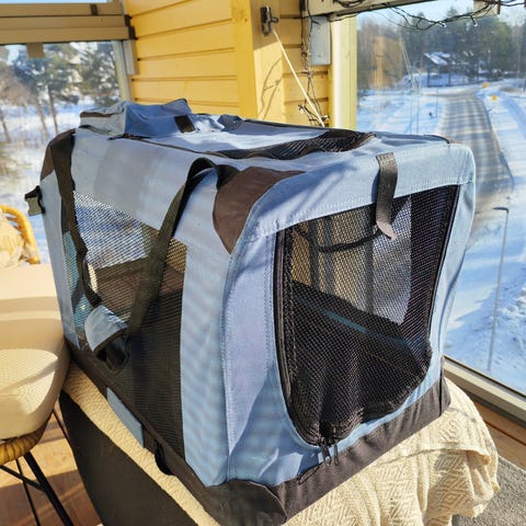 Merkki Traxx, ostettu hööksistä. Tahroja. Päälliset saa irrotettua pesua varten. Etuverkossa ja pohjan kulmissa pientä kulumaa. Kokoontaitettava. Mitat kasattuna 60x42x44cm. Kulkeutuu omien menojen mukaan Kuopioon Matkukseen, Prismaan ja keskustaan.