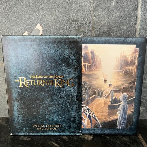 The Lord of the Rings : The Return of the King DVD 2-Disc Limited Edition. Sisältää elokuvan teatteriversion ja extended version. Elokuvalevy kaksipuolinen, special features levy yksipuolinen. Pyydän huomioimaan että kaksipuoleinen elokuvalevy ei ole täysin naarmuton, koitin saada naarmut kuviin. Niistä huolimatta katsominen onnistuu kyllä. Ostettu Suomesta aikanaan. Nouto Salosta, kulkeutuu minun kyydillä Turun Kupittaalle päivittäin tai postitus.