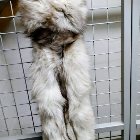 Erittäin siisti kettupuuhka. Perusväri valkoinen, jossa ruskehtava raita.