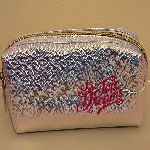 Make-up Baby meikkipussi ja Spa Headband and Wrist Wash Set, jossa on vaaleanpunainen meikkipussi ja valkoinen spa-panta sekä rannepesusetti. Materiaali 100 % polyesteri.
