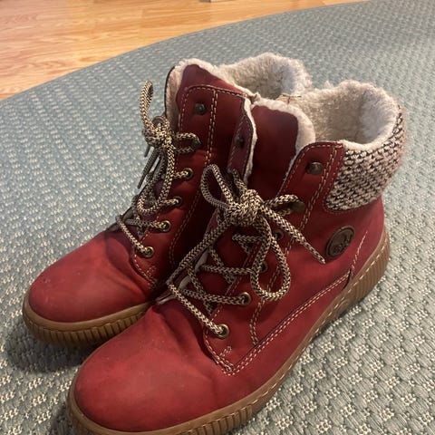 Rieker talvikengät, koko 40, musta väri. Kengissä on lämmin vuori ja vetoketju sivussa helpottamassa jalkaan pukemista. Pohja on kuvioitu pitävyyden lisäämiseksi talviolosuhteissa. Uudet paketissa.