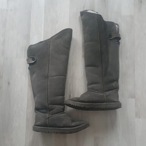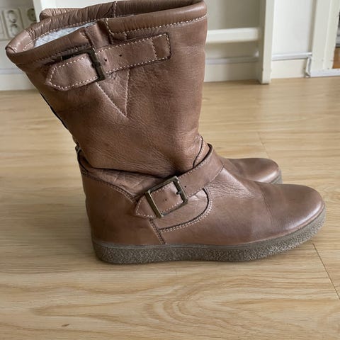 Baden Shoes-merkkisen Triplassa olleen kenkäliikkeen erittäin pakkasenkestävät lampaannahkasaappaat. Pinta mokkanahkaa, vetoketju sivussa antaa tilaa ja reunakoristeet kimaltelevat valossa.
