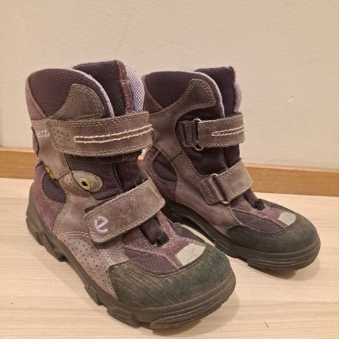 ECCO lasten talvikengät tytöille, koko 32. Väri viininpunainen. Kengissä on tarrakiinnitys ja kumipohja, jotka tarjoavat hyvän pidon ja helpon säädettävyyden. Sopivat käytettäväksi kylmällä säällä ja ulkoiluun.