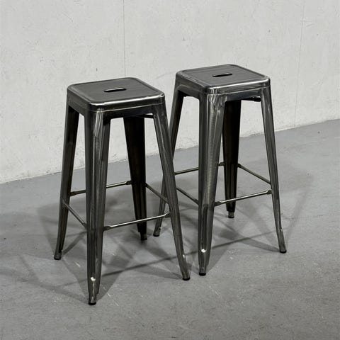 Tukeva metallirakenne, ajaton ja teollinen design. Sopivat hyvin keittiöön, baaritasolle, työtilaan tai sisustukseen. Toisessa jakkarassa korkeussäätö, toisessa kiinteä korkeus (näkyy kuvissa).