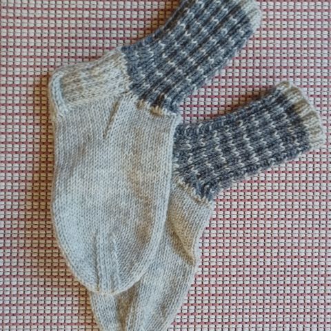 Myydään uudet käsinkudotut villasukat, koko 41-42 (26 cm). Lankana Novitan 7 veljestä, (villa 75% ja polyamidi 25%). Väri farkku. Sukissa vahvistettu kantapää. Pesu 40 asteessa. Taloudessa ei ole eläimiä eikä polteta.