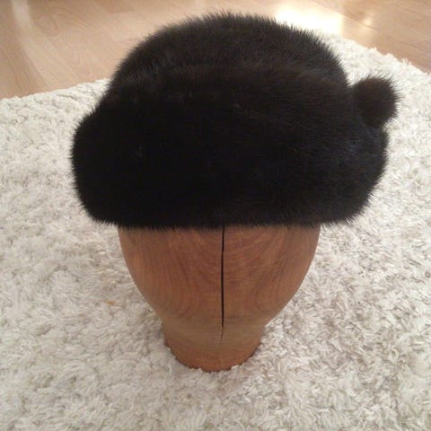 Vähän käytetty, hyväkuntoinen pieni minkkiturkishattu. Tumman ruskea/musta. Mitat noin 16 cm x 18 cm. Vain käteiskauppa noudettaessa Jokelasta tai Toridiilillä.