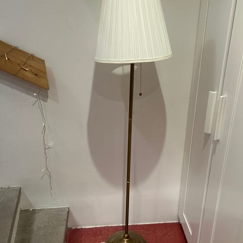 Myydään hyväkuntoinen Ikean Årstid-sarjan lattiavalaisin. Huom väri!! Tämä on vanhempaa mallistoa joten metalli on krominvärinen, eli ei sama kuin tämänhetkisessä, jossa väri on messinki.