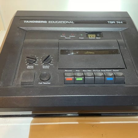 Perinteinen, 90–luvun nauhuri saneluun ja tallennukseen.
