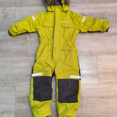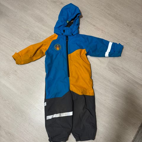 Vossatassar-merkkinen lasten talvihaalari, koko 100cm, väriltään kirjava. Irrotettava huppu. Kiristysnyörit sisäpuolella. Ehjä ja siisti kunto. Haalari ei ole kovin paksu, vaan ns. kevyt toppahaalari.